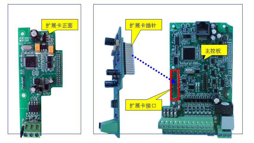 每塊主控板只有1個(gè)擴(kuò)展口,因此單臺(tái)變頻器不能同時(shí)安裝2塊及其以上數(shù)量的擴(kuò)展卡。