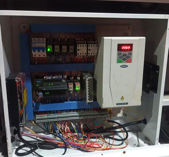 該溜光機的傳動系統(tǒng)采用易能ENA100變頻器驅動電機帶動滾筒轉動,變頻器根據(jù)不同工件,不同工藝實時調整轉速,實現(xiàn)粗拋和精溜等一體操作,提高工作效率。