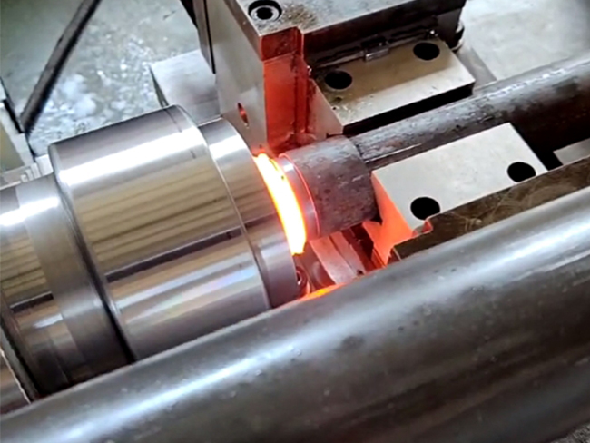 1.摩擦生熱·待焊的兩根鋼管(工件)分別夾持在設(shè)備的旋轉(zhuǎn)夾具和移動(dòng)夾具上?!ばD(zhuǎn)端高速旋轉(zhuǎn),移動(dòng)端以一定壓力向旋轉(zhuǎn)端移動(dòng),使接觸面劇烈摩擦,機(jī)械能轉(zhuǎn)化為熱能,溫度迅速升高至材料的塑性狀態(tài)(接近熔點(diǎn)但未熔化)。